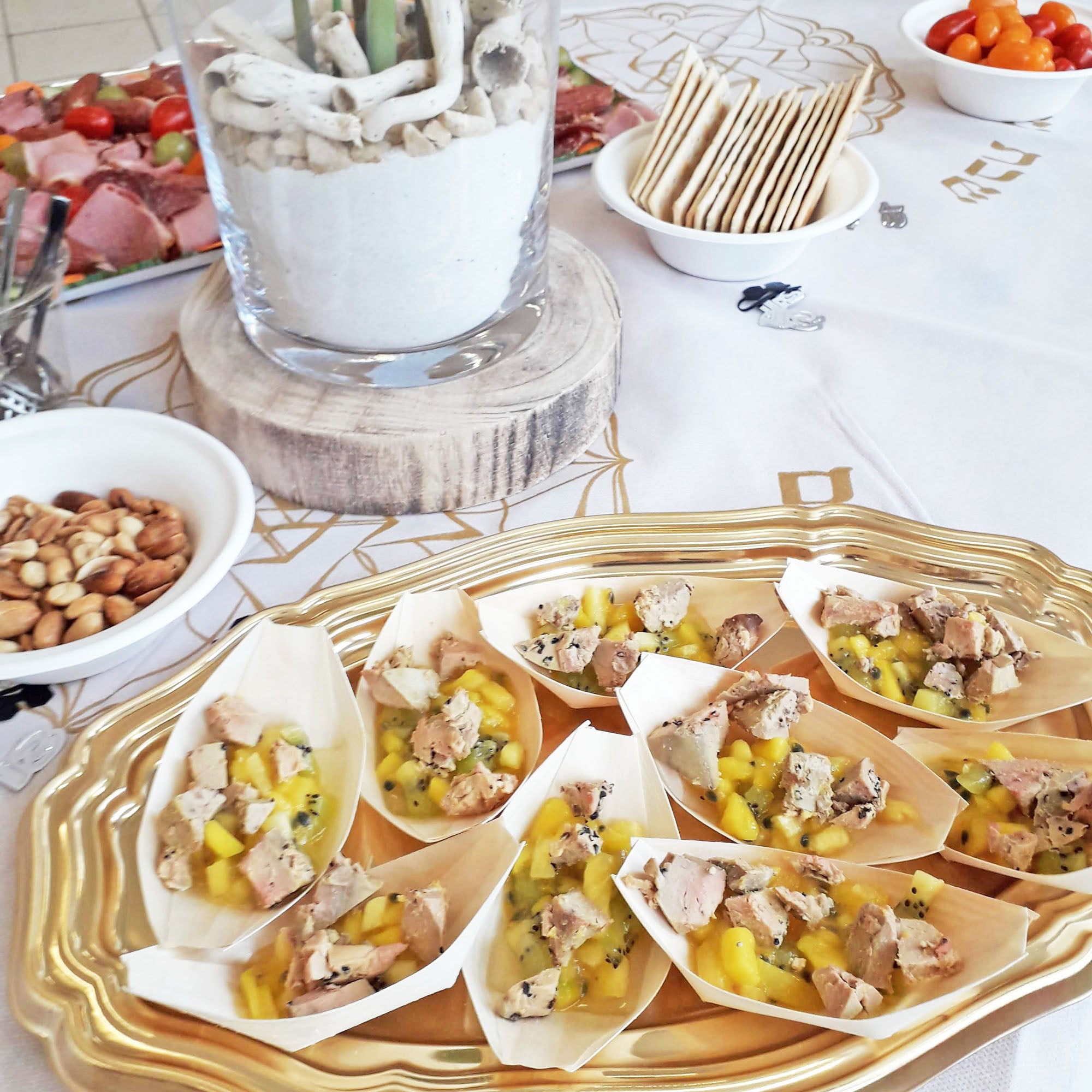Selon vos besoins, notre prestation peut aller de la préparation des mets jusqu'à l'organisation complète de votre réception incluant le lieu de réception, le service et la décoration.